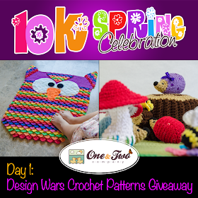 On 1st day of celebration, 10 lucky winners will win a copy of my Colorful Owl Rug pattern, awarded in DW4 in 3 categories and Best Overall Design, and my Adventure in the Woods Playground pattern, awarded in DW6 in 3 categories